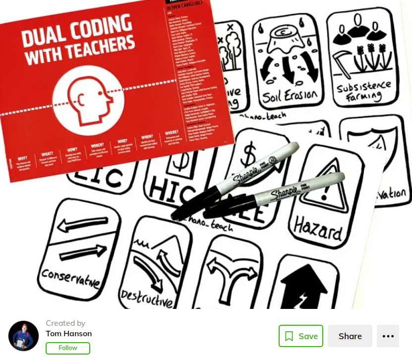 Figure 14 – example of student produced work using visual icons / dual coding to support their recall of knowledge. Source: https://lovetoteach87.com/2019/05/02/examples-of-dual-coding-in-theclassroom/ In addition, there has been some work by Tom Hanson (@hano_teach) into making geography specific icons to support dual coding, influenced by the work of Oliver Caviglioli.
