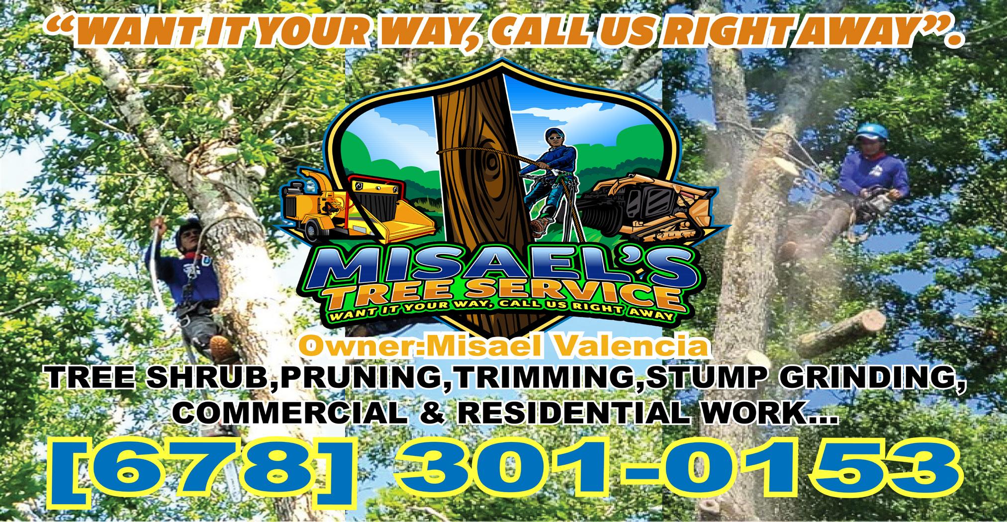 TREE SERVICE ... 24/7 Emergency Tree Service available, plus Pruning & Trimming, Stump Grinding. Commercial or Residential. Misael's Tree Service, 678.301.0153