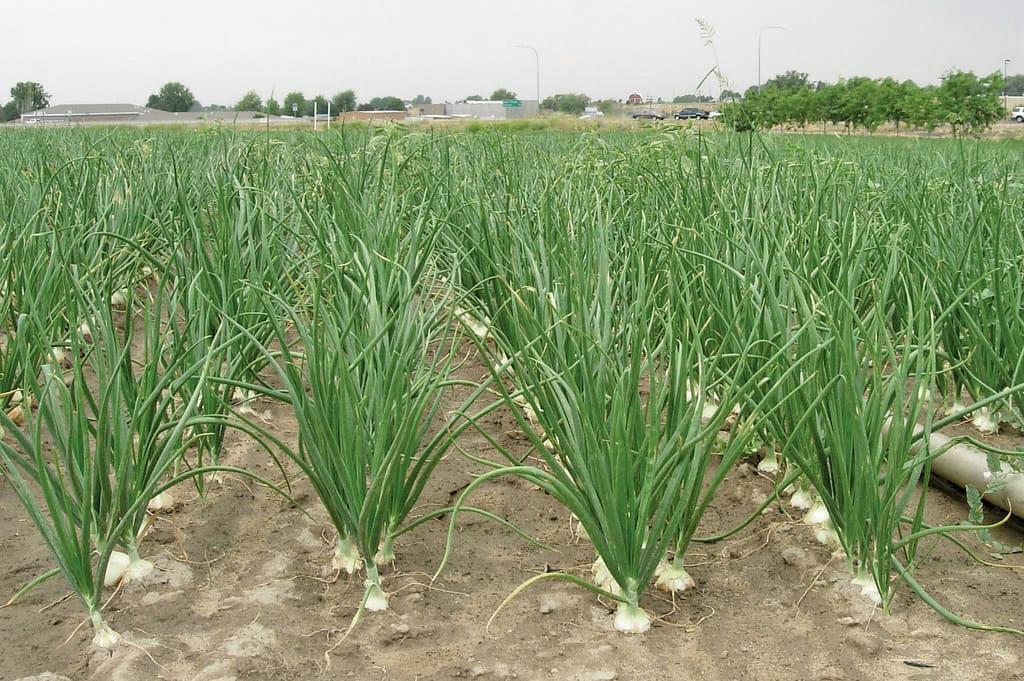 Keep the onion roots moist but not wet. This is especially important after mid-March when they begin to bulb. They may need 3/4 inch of water twice a week then. Let the onion beds dry out as they approach harvest.