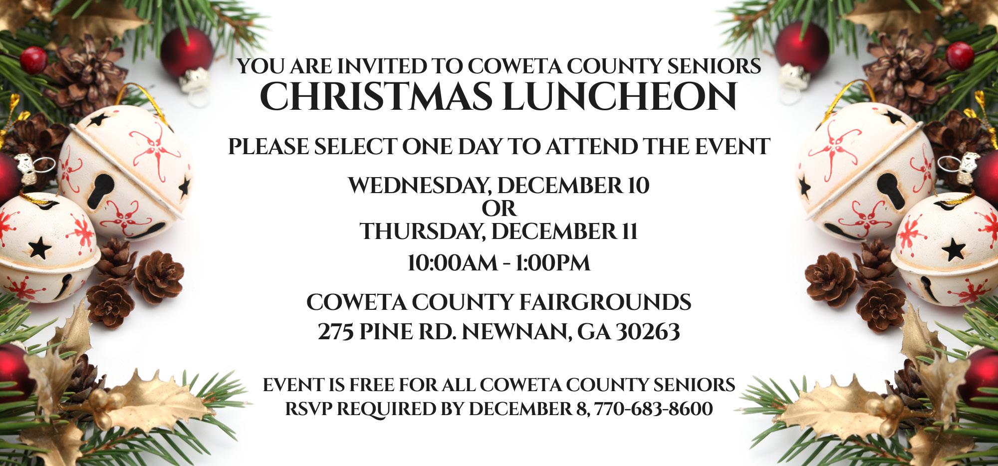 Deadline to RSVP for Coweta Senior Services Holiday Luncheon RSVP at 770-683-8600 cowetaparksandrec.com