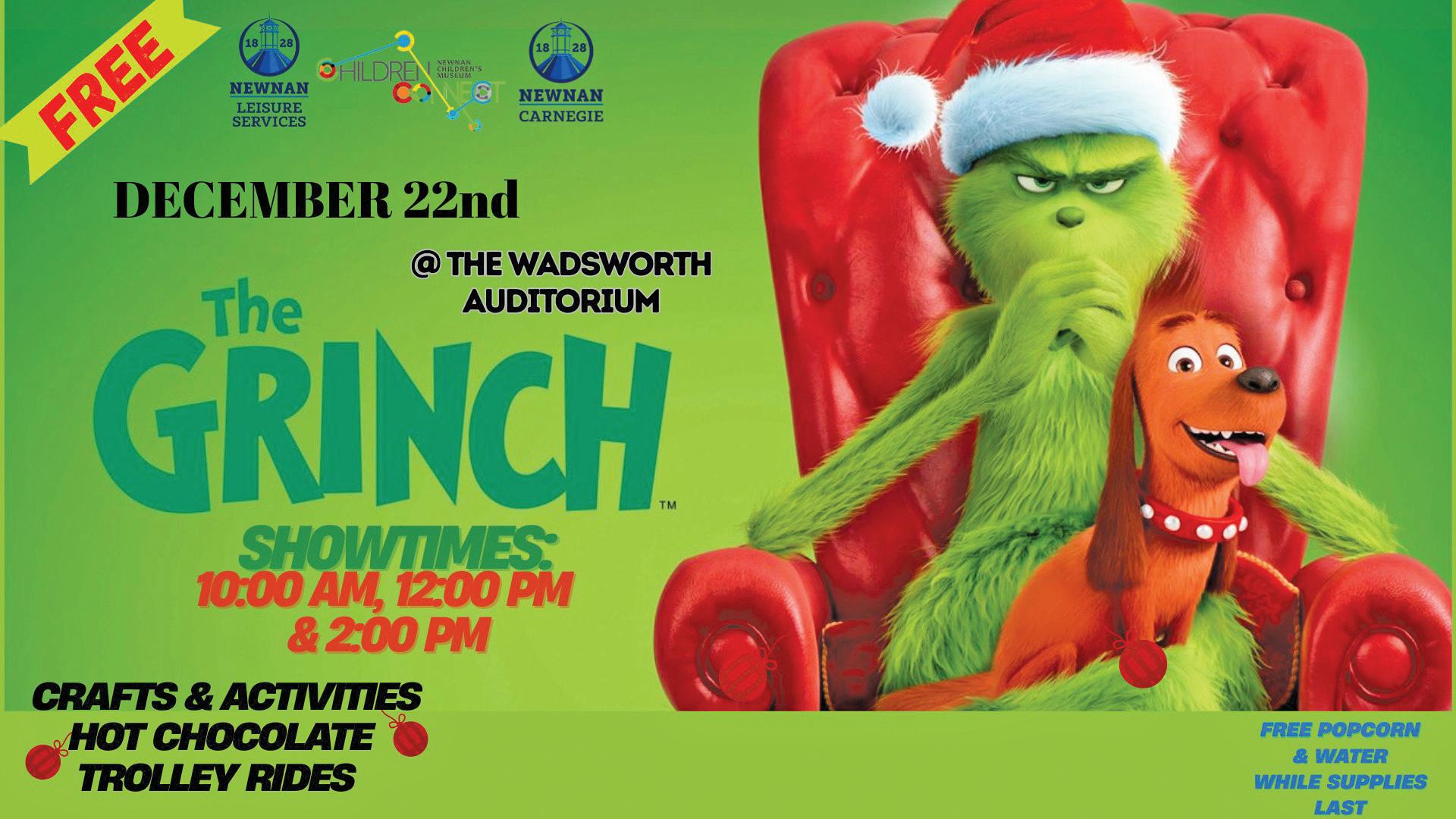 Join Newnan Leisure Services for a FREE Movie at the Wadsworth! Partnering with ChildrenConnect, Carnegie Library to provide crafts, face painting and games while riding the Newnan Trolley to the various locations! We’ll be enjoying Dr. Seuss’ The Grinch, with multiple show times starting at 10 a.m., Noon, 2 p.m.! Free popcorn & water provided while supplies last! Additional goodies available for purchase. Tickets not required but registration encouraged for headcount purposes. eventbrite.com. 25 Jefferson St.