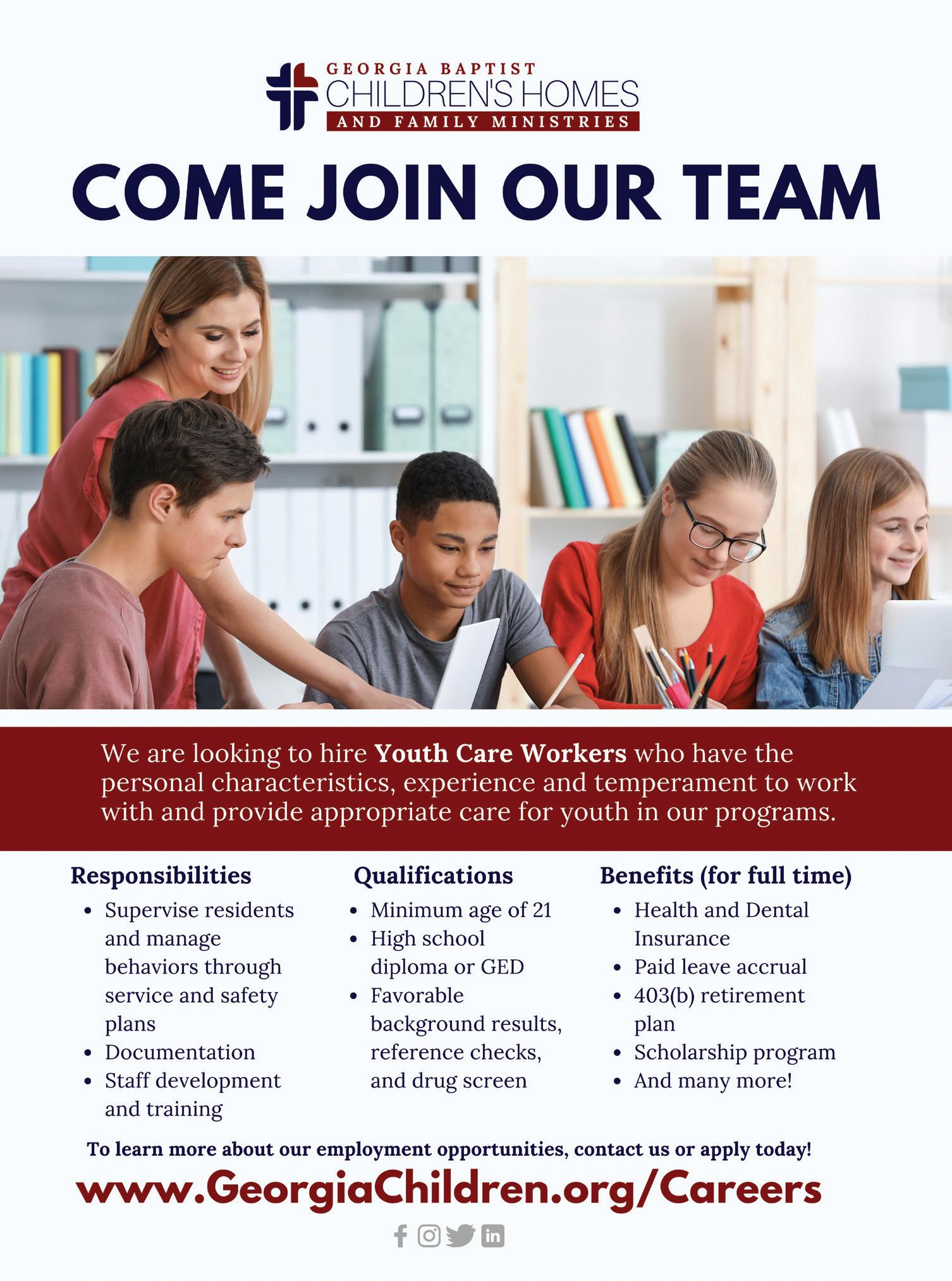 YAMAHA IS HIRING. LOOK FOR THEIR AD GEORGIA BAPTIST CHILDREN'S HOME IS HIRING. LOOK FOR THEIR AD