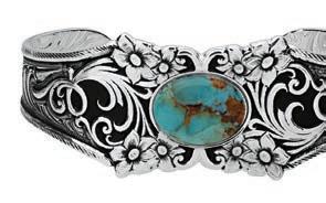 1. HIGH DESERT CREATIONS “Dancing In The Field” Necklace, $385, highdesertcreations.com. 2. KELLY HERD Dancing Stone Horseshoe Dangle Pendant, $159, kellyherdjewelry.com. 3. BROKEN BAR BOUTIQUE Golden Spur Necklace, $82, brokenbarboutique.com. 4. ANTLER RINGS The Magnolia Springs, $500, antlerrings. com. 5. HIPPIE COWGIRL COUTURE Kingman Lariat, $5,400, hippiecowgirlcouture.com. 6. DOUBLE D RANCH Vintage Squash Blossom, $7,200, doubledranch.com. 7. MONTANA SILVERSMITHS Empowered Montana Legacy Bracelet, $100, montanasilversmiths.com. 8. VOGT SILVERSMITHS The Bonnie Cuff, $489, vogtsilversmiths. com. 9. CARROLL SPUR CO. Oval Turquoise Diamond Halo 14K Gold Ring, $1,325, carrollspurco.com. 10. BUCKAROO BLING Copper Aspen Leaf Earrings with Turquoise, $110, buckaroobling.com. 11. VICTORIA’S SOUTHWEST DESIGNS Spiny Oyster Orange Necklace, $599, victoriassouthwestdesigns.com. 12. COWGIRL CONFETTI Around We Go Ring, $17, cowgirlconfetti.com. 13. WILD LACE BEADWORK Compact Interchangeable Trophy Buckle Bag, $395, wildlacebeadwork.com. 14. COWGIRL CONFETTI Maggie Barrette, $19, cowgirlconfetti.com.