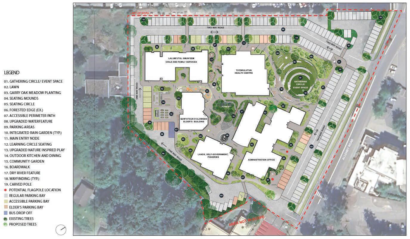 Some off-site work will take place as well, including a culvert extension along Tzouhalem Road and common excavation in driveway areas.