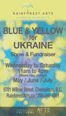 A collection jar will be available for people who simply want to donate money. “You’re welcome to stop in any time to donate,” Rainforest Arts Manager Stephanie Allesia said, noting that funds raised will go to the Rotary Club of Chemainus, which will forward it to Rotary Foundation of Canada where it will be designated for the Ukraine Disaster Fund.