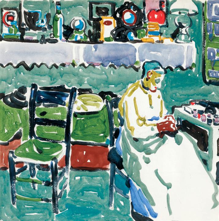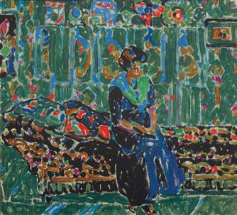 From childhood Carr had felt drawn to the Indigenous population in Victoria and she had already painted scenes of the Salish communities there and around Vancouver, then venturing as far north as the Kwakwaka’wakw villages of ’Yalis (Alert Bay) and T’sakwa’lutan (Cape Mudge). But in 1910-1911 her approach had been completely transformed by a period of studio training in France. Her teachers there had introduced her to Post-Impressionist colour theory and composition, and confirmed her intuition that the carvings of northwest coast Indigenous peoples had great aesthetic merit on their own terms.