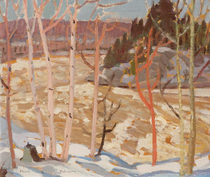 December 1920, he included around two hundred paintings in an extensive solo exhibition at the T. Eaton Company. In the fall of 1921, Johnston left Toronto to assume the position of principal at the Winnipeg School of Art. His departure marked a break with the Group of Seven, a move which became official in 1924. Johnston’s motivation lay primarily in his desire to exhibit independently.