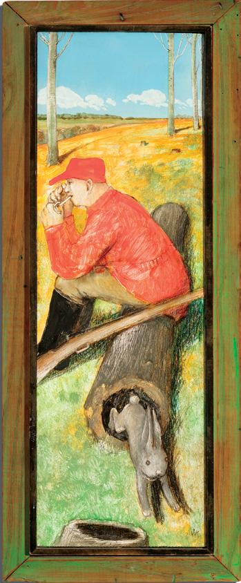 On the reverse of this painting is another winter composition, depicting a figure at work beside a woodpile and a log cabin. This second painting underscores Jackson’s tireless observation of rural life and may also represent the same location and the same snowfall as the sleigh composition, but from another vantage point. Double-sided paintings of this quality and completeness are rare in Jackson’s oeuvre and offer a fascinating glimpse into his working process, revealing two complementary narratives within a single work.