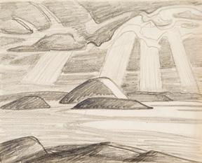 Lawren Harris and A.Y. Jackson had first visited the north shore of Lake Superior after a fall sketching trip to Algoma in 1921, and in 1925, invited Franklin Carmichael to accompany them. This trip was Carmichael's first to truly remote country. A vast forested region of pristine lakes and Canadian shield landscape.
