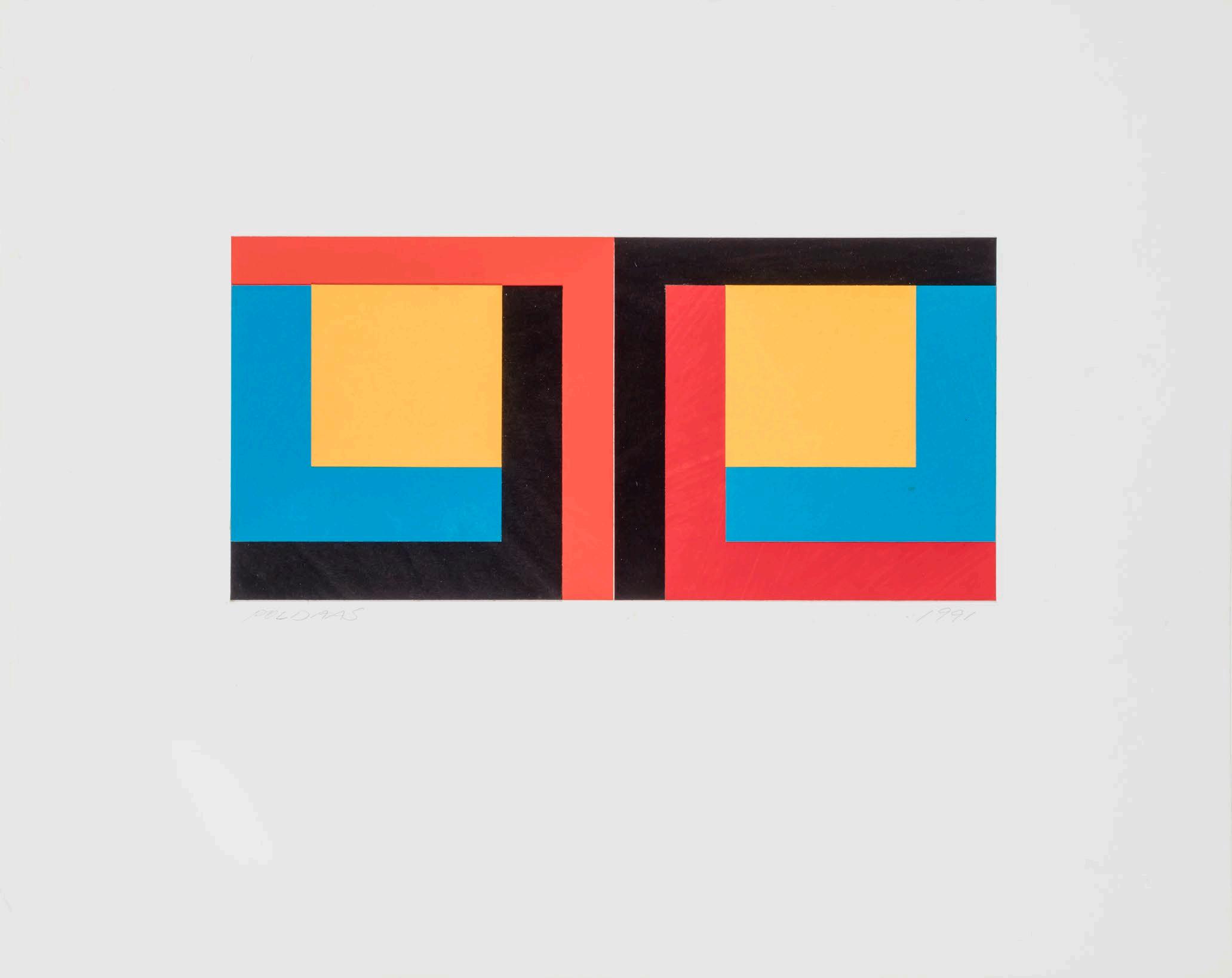 Inverse Squares (Yellow on Blue) collage, enamel on paper mounted on card signed and dated 1991 lower margin; titled on the reverse; no. 5 of 12 16 x 20 in