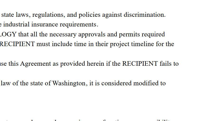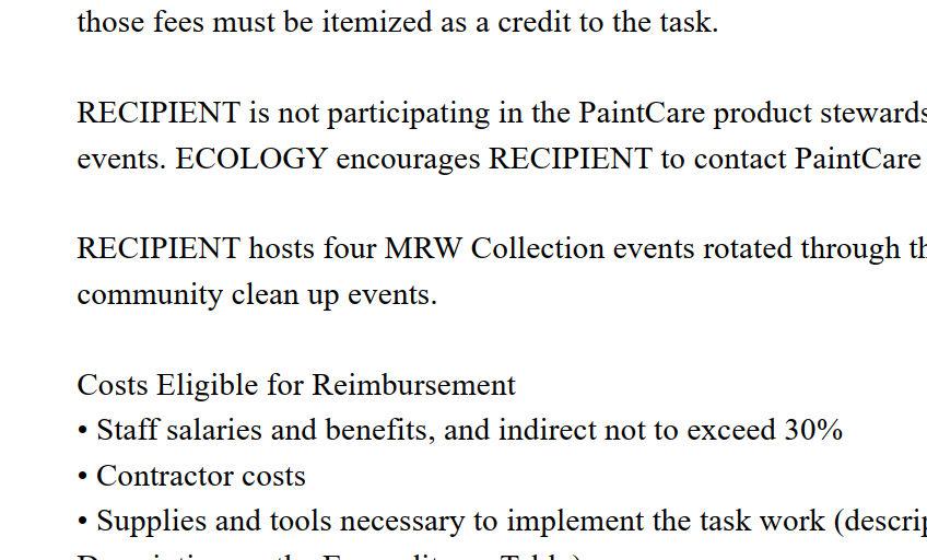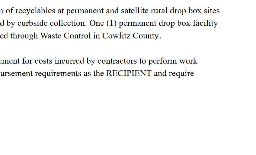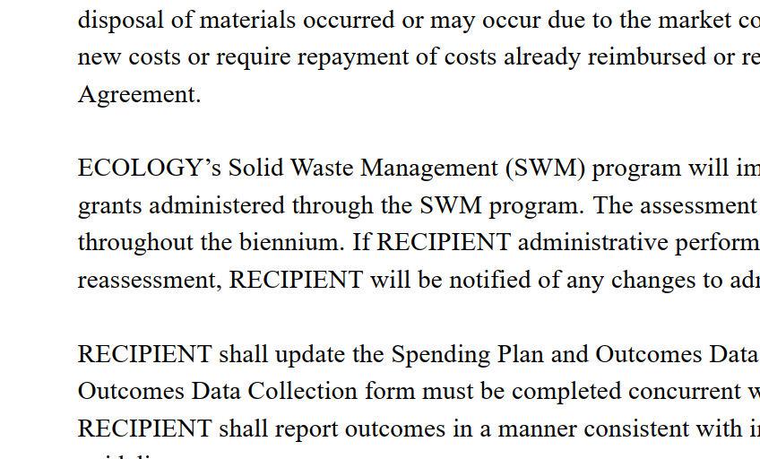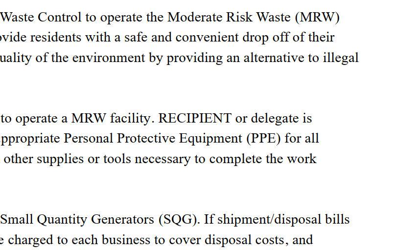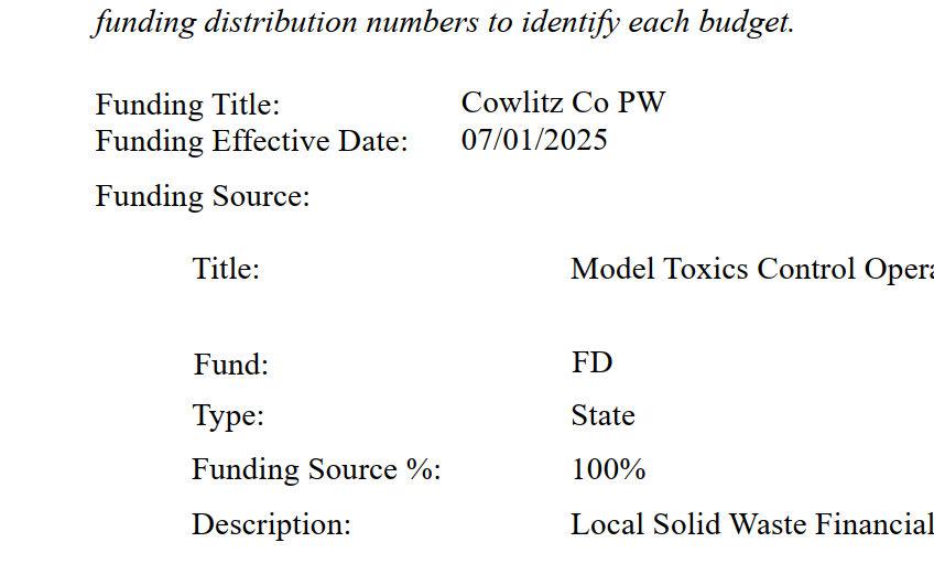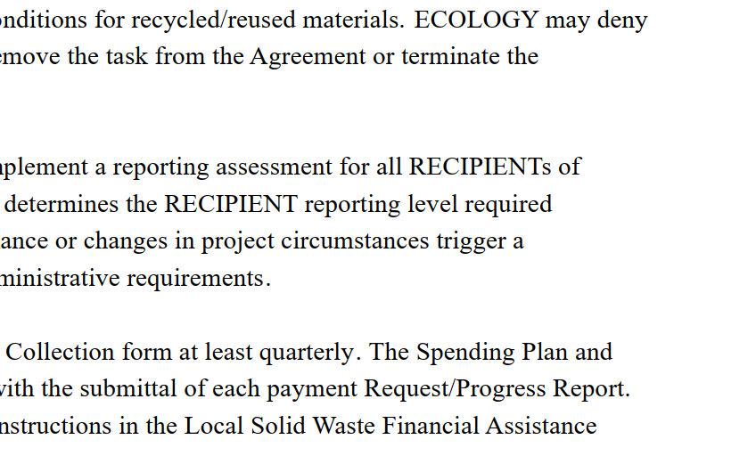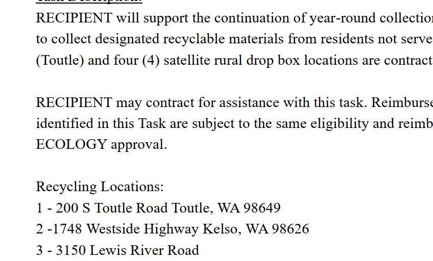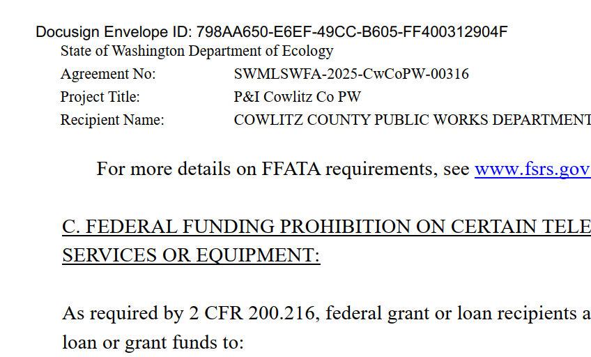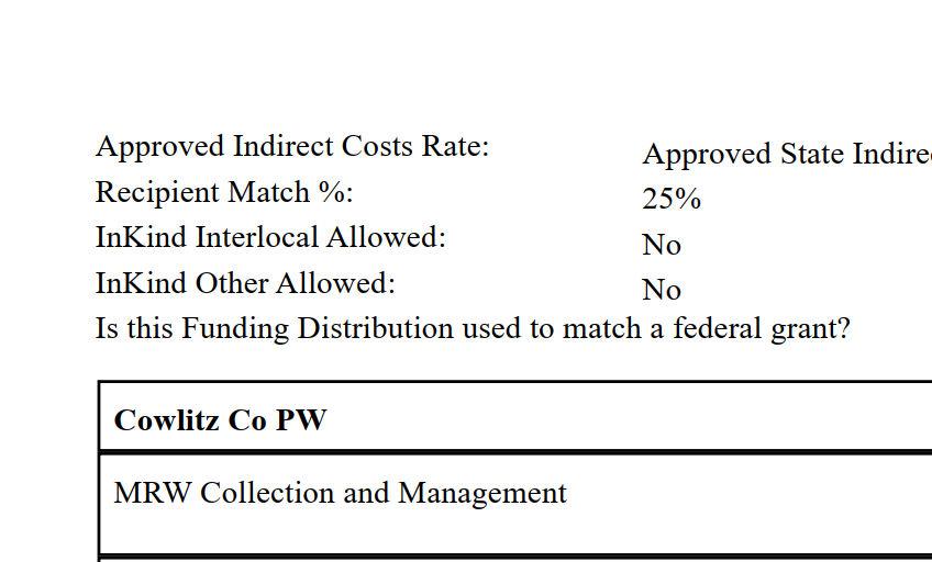 2. Solid Waste Management Local Solid Waste Financial Assistance Agreement with the Washington State Department of Ecology for operation and management of hazardous waste and recycling sites. The total grant amount is $482,626. (14263)