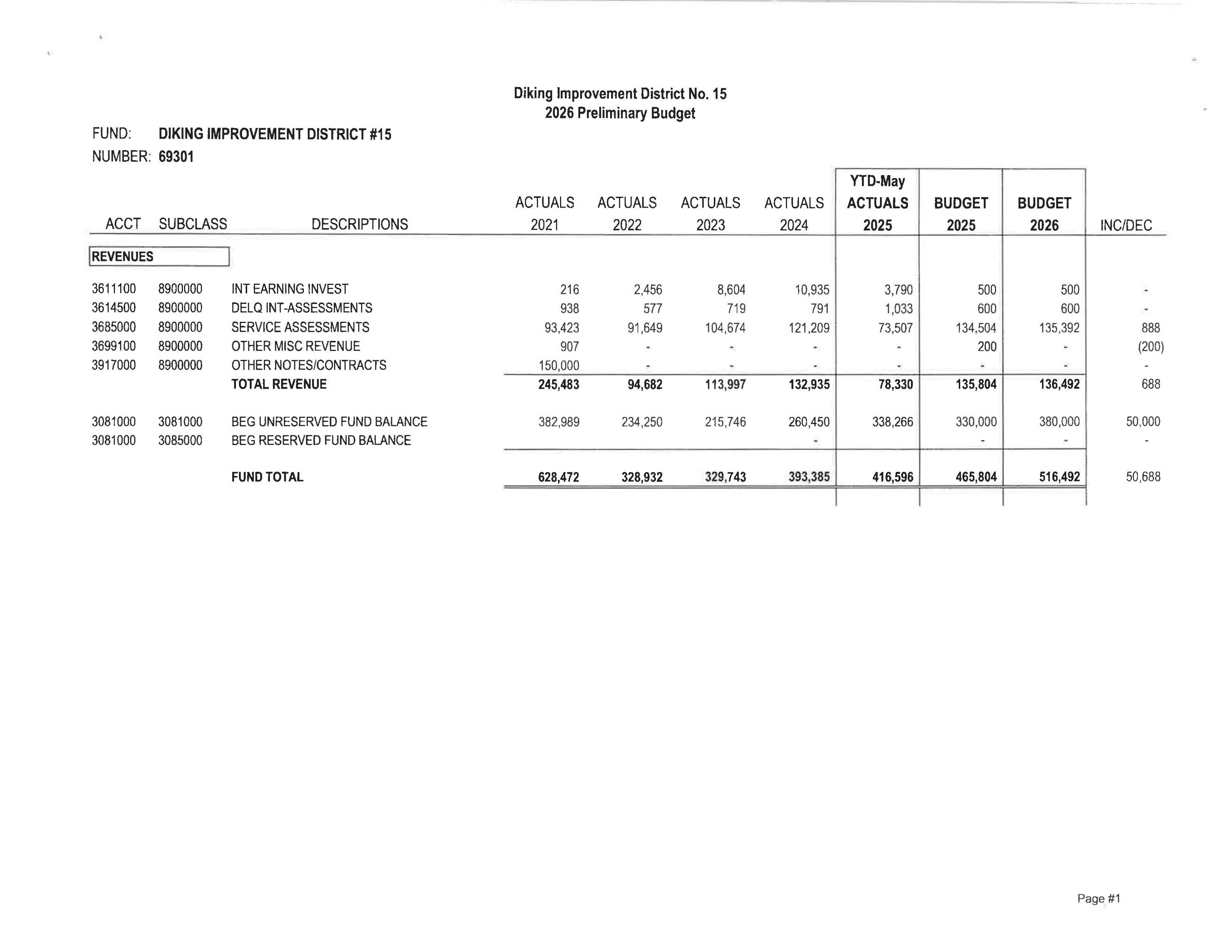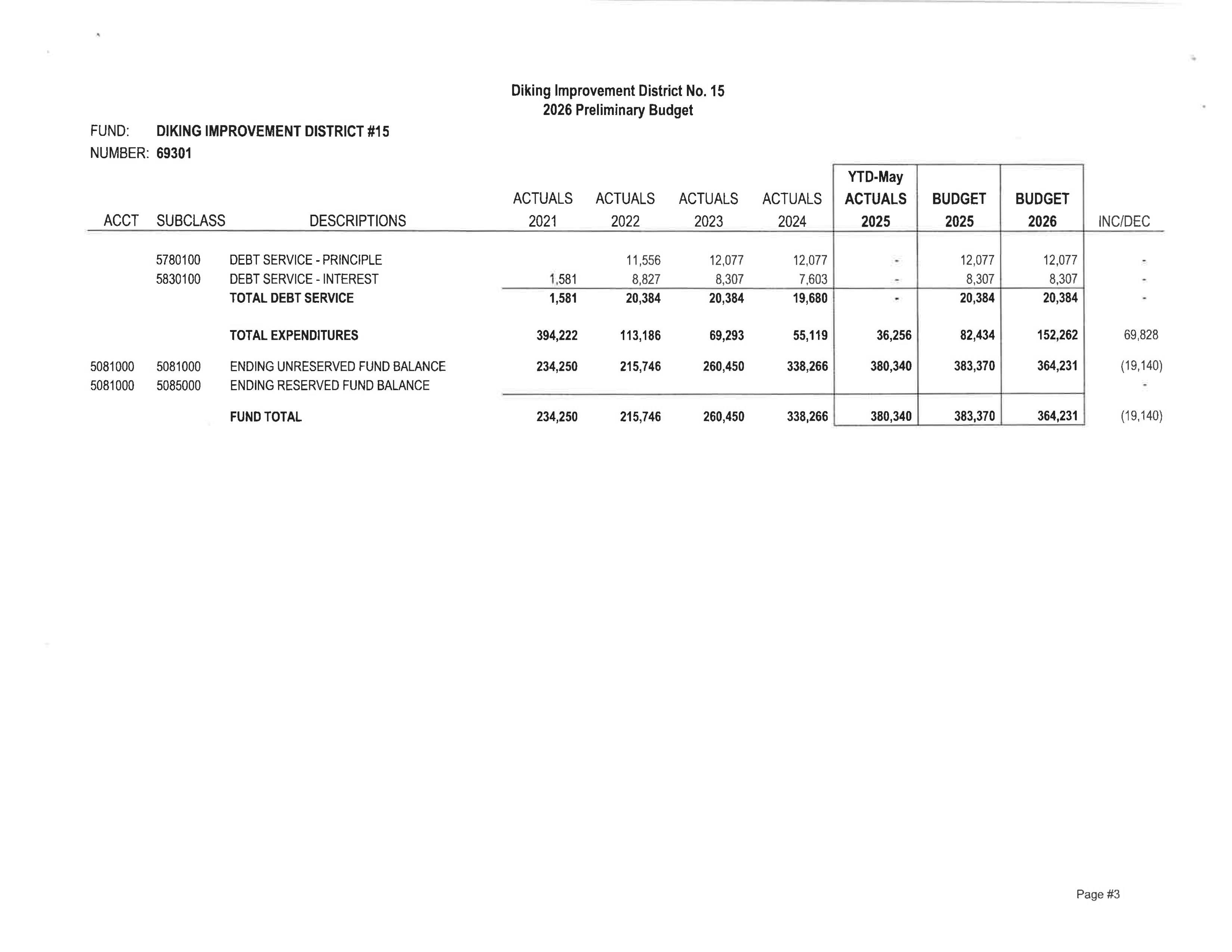 a. 2026 Preliminary Budget Estimate for Diking Improvement District No. 15 (14265)