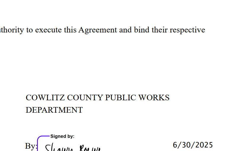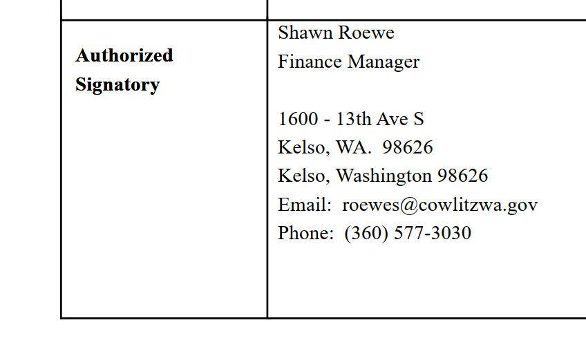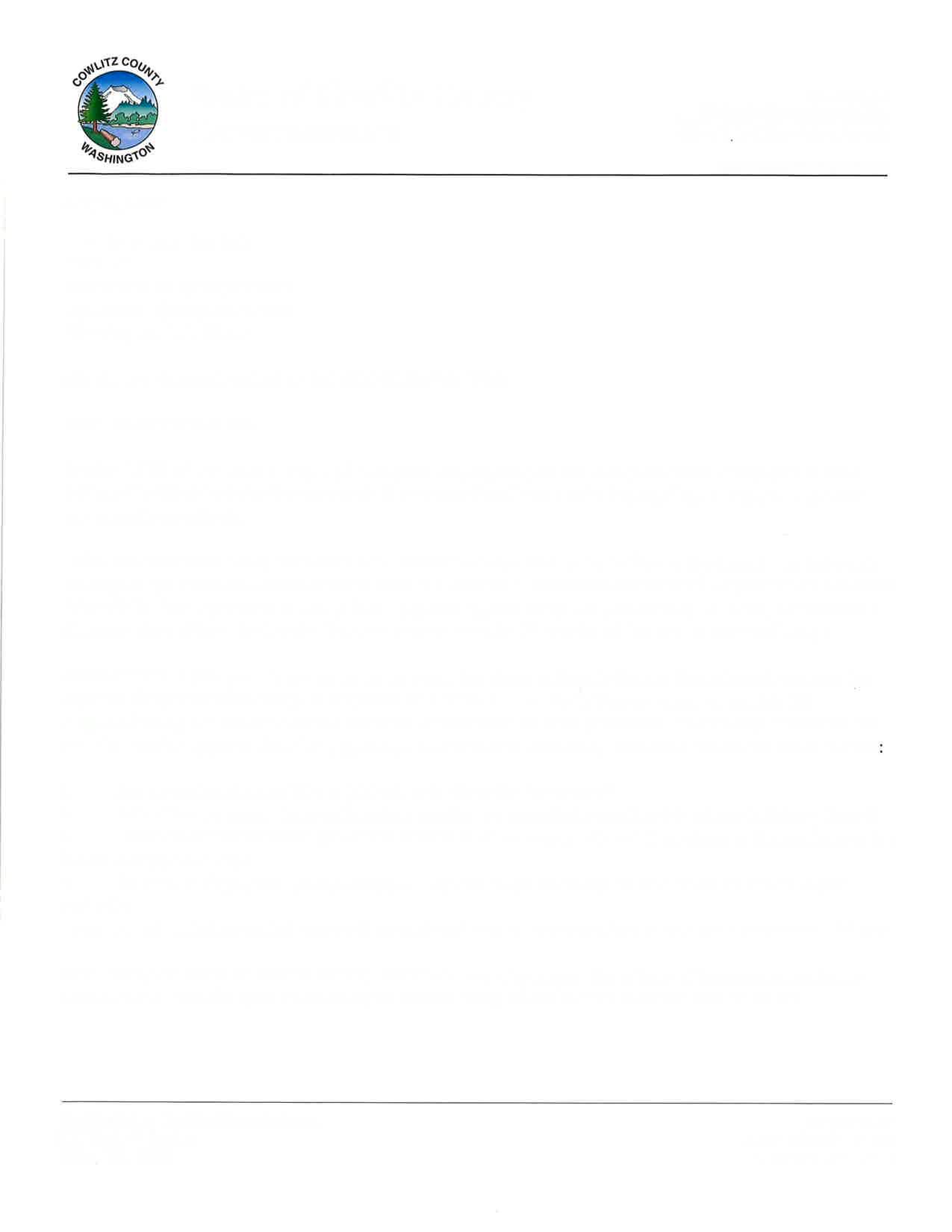 Sincerely, Board of County Commissioners Of Cowlitz County, Washington