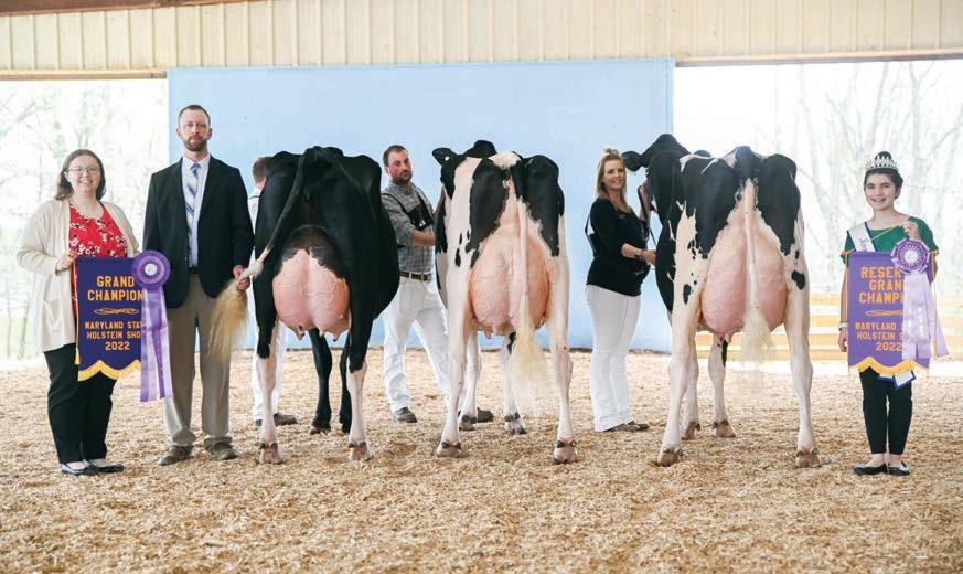 Pheasant Echo’s Hez Dell (Hezekiah), 2nd 4-Year-Old, Atley Miller, MD Intermediate Champion: Budjon Abbott Attention-ET (Cinderdoor), 4th Senior 3-YearOld, Trinity Miller, MD Junior Champion: Pheasants Echo’s DiazRed-ET (Analyst), 4th Summer Yearling, Trinity Miller, MD Grand Champion LtoR: Grand Champion Harcliff Solo Bambi-ET, Ernest Kueffner & Terri Packard and Rodney Hetts, MD; Reserve Grand Champion Pheasant Echo’s HO Meghan, Byron Stambaugh, MD; HM Grand Champion Peace&Plenty Kenosh Cuisine, Peace & Plenty Farms LLC, MD.