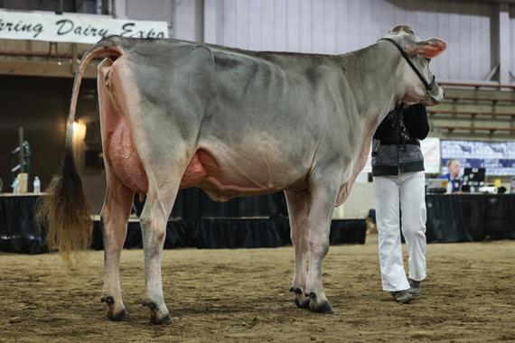 She was purchased Peter Vail and Ken Main of Elite Dairy, and became an anchor of their Cutting Edge show string based in Copake, NY. She won numerous Grand Champion titles, but none tops the day in 2014 when she won the Aged Cow class, and then the Senior Champion and Grand Champion banners at the International Brown Swiss Show in Madison, WI. Twice All-American Aged Cow, she also has the distinction of being the first cow ever classified EX-95 in the US, after the Brown Swiss Association USA established that as the new pinnacle score for the breed in 2016.