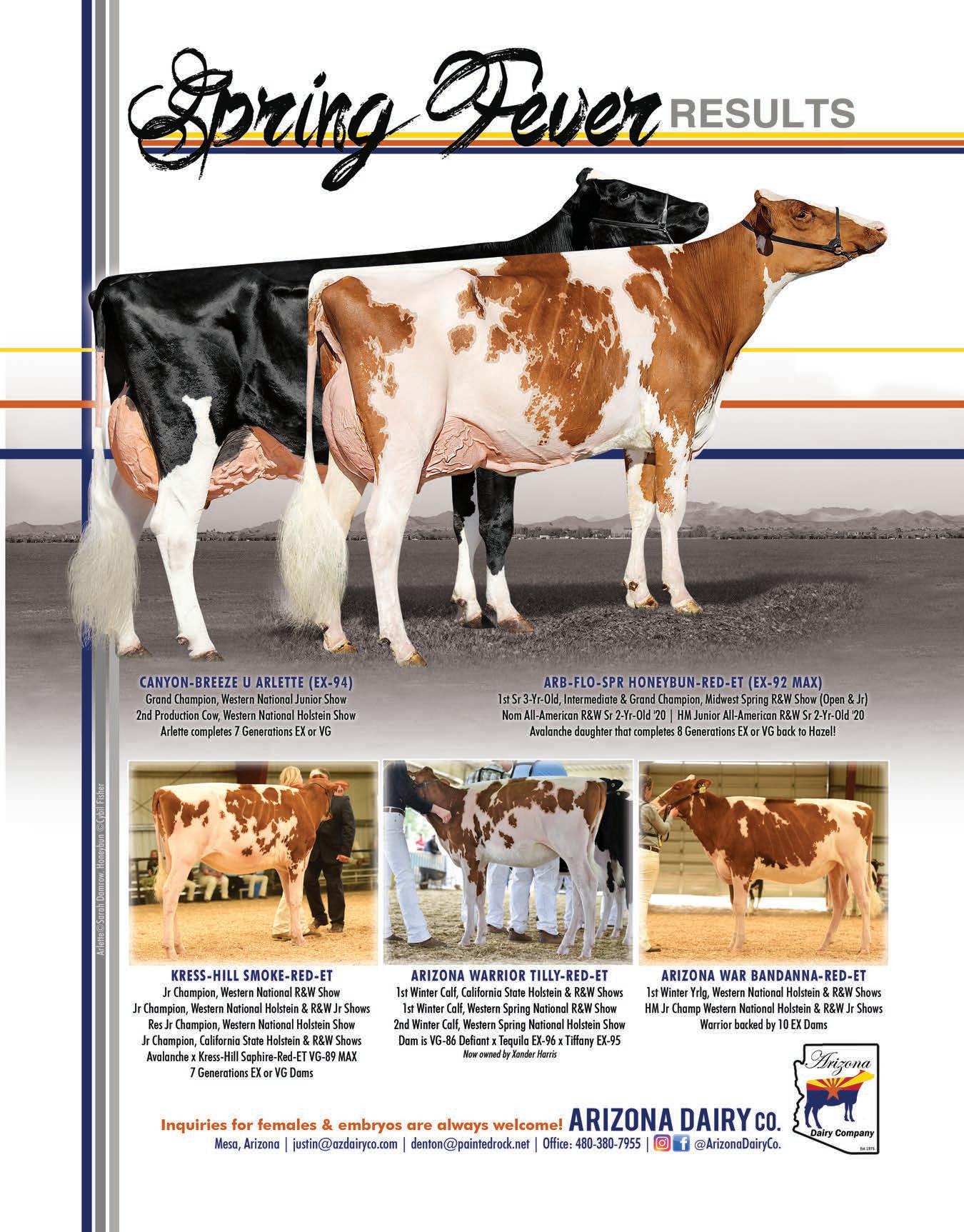 Junior Champion Ms Milksource Adelle-Red, Milk Source LLC, Legendholm, and Vosters, WI. Intermediate & Grand Champion Open & Junior Shows Arb-FloSpr Honeybun-Red-ET, Jacey & Hadley Ross, AZ.