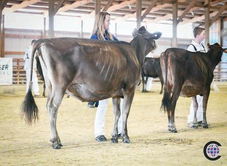 Brown Swiss Senior & Grand Champion Cutting Edge CP Margo, Allan Brisson, Allandra Farm Inc, NY. Brown Swiss Intermediate & Reserve Grand Champion Buschs Famous Jenna, Peter Vail, FL.