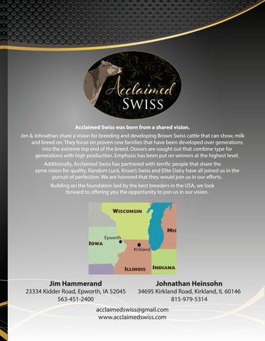 Acclaimed Swiss was born from a shared vision. Jim & Johnathan share a vision for breeding and developing Brown Swiss cattle that can show, milk and breed on. They focus on proven cow families that have been developed over generations into the extreme top end of the breed. Donors are sought out that combine type for generations with high production. Emphasis has been put on winners at the highest level. Additionally, Acclaimed Swiss has partnered with terrific people that share the same vision for quality. Random Luck, Kruse’s Swiss and Elite Dairy have all joined us in the pursuit of perfection. We are honored that they would join us in our efforts. Building on the foundation laid by the best breeders in the USA, we look forward to offering you the opportunity to join us in our vision.
