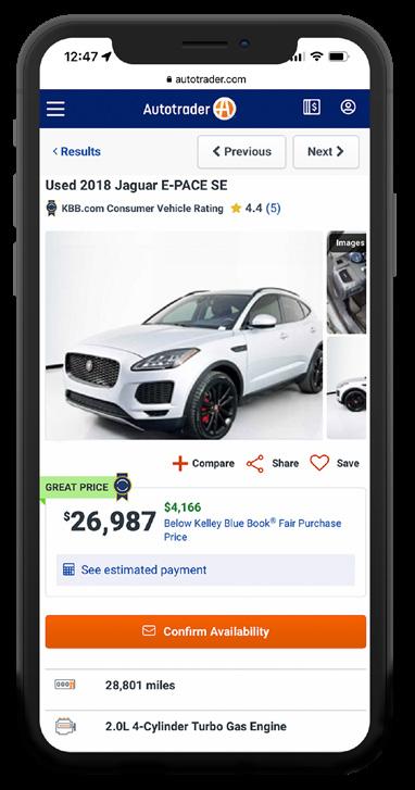 As any competitive automotive dealer knows, effective marketing takes the right combination of messaging, smart data and proficient timing. Autotrader never stops fine-tuning this combination in order to provide your dealership access to higher quality, ready-tobuy leads, driving them to your inventory.