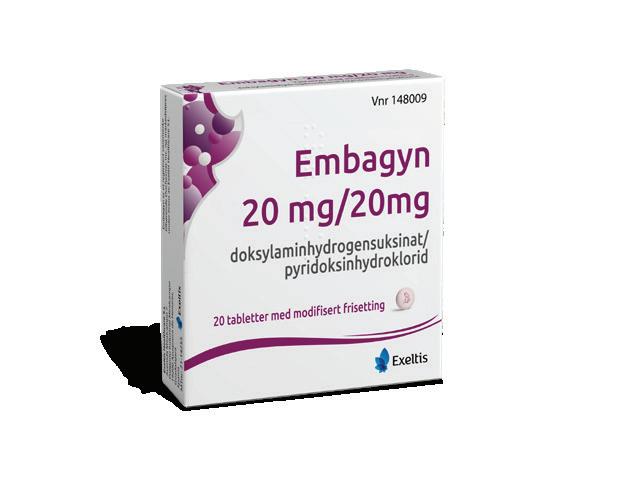 Reseptgruppe: C. Referanser: 1) Embagyn SPC 29.01.2025. 2) Doksylamin, pyridoksin – Helsedirektoratet, Siste faglige endring:25.06.2025 3) Gynekologi (NGF) www.metodebok.no