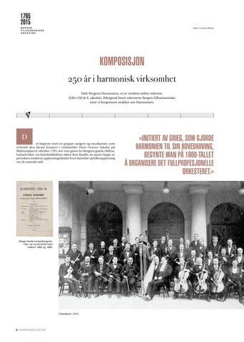 KOMPOSISJON 250 år i harmonisk virksomhet Hele Bergens Harmonien, et av verdens eldste orkestre, fyller 250 år 8. oktober. Riktignok heter orkesteret Bergen Filharmoniske, men vi bergensere snakker om Harmonien.
