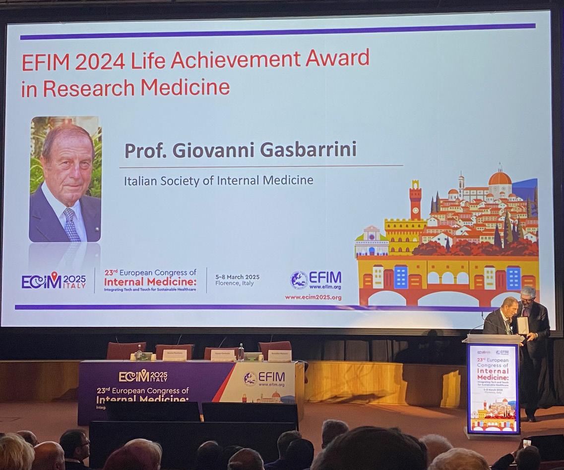 Deretter var det offisiell åpning av ECIM ved president i European Federation of Internal Medicine (EFIM), Riccardo Gomez Huelgas med ECIM Honorary Lifetime Achievement Award til professor Daniel Sereni fra det franske indremedisinske selskap og professor Giovanni Gasbarrini fra det italienske indre medisinske selskap, jf. bilde 2.