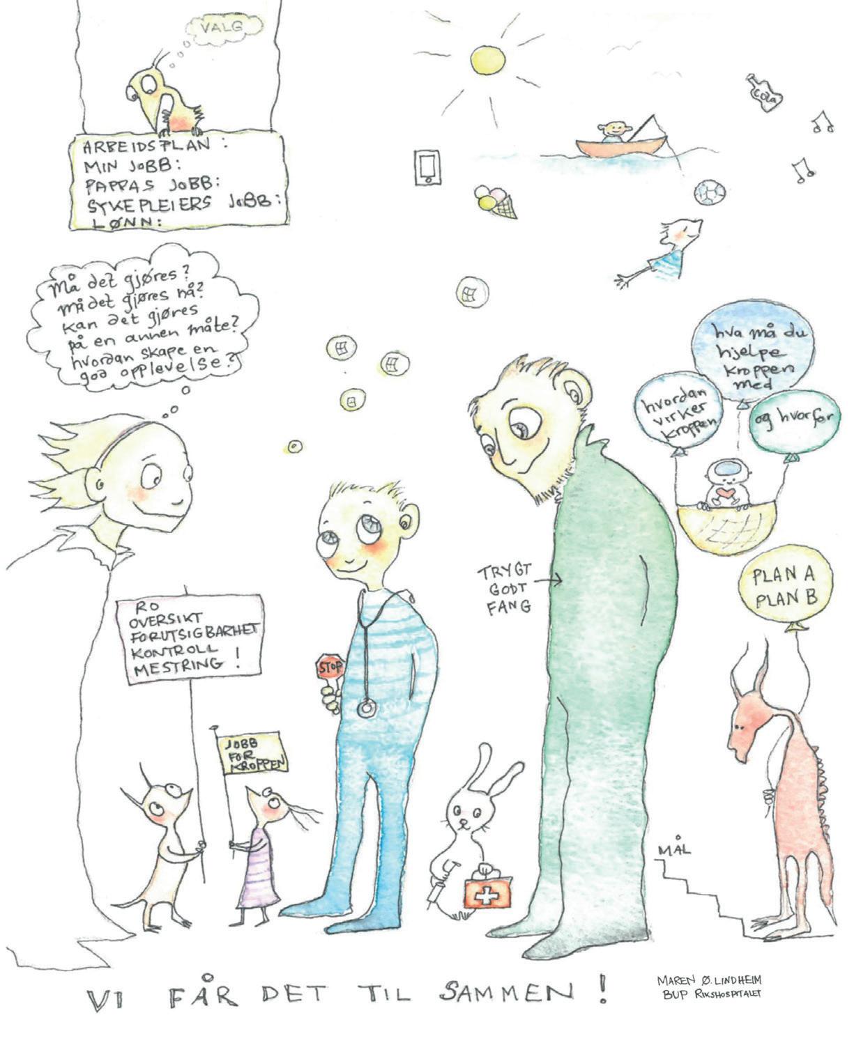 opp veiledningsgruppe for foresatte hvor de i tillegg til undervisning om hva som skjer i kroppen ved funksjonelle lidelser, får veiledning knyttet til foreldrerollen. Fokus på foreldrerollen er derfor en integrert del av programmet og i tråd med evidens (1). Vi brenner for å på sikt kunne vie mer av våre ressurser til foresatte, i tillegg til samarbeid med lokalt helsevesen og skole. Ofte ser vi at barnas symptomer reduseres om vi jobber med psykososiale opprettholdende faktorer rundt barnet».