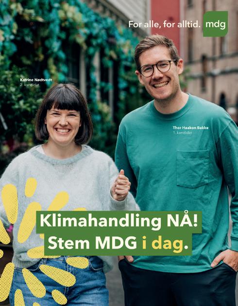 – MDG er den beste garantisten for at klima, miljø og natur blir ivaretatt i all samfunnsutvikling. En levelig klode er grunnlaget for all politikk. I tillegg er solidaritet en viktig bærebjelke: Solidaritet med de som har det vanskeligst i samfunnet, med fremtidige generasjoner og solidaritet med alt som lever i naturen, dyrevelferd må prioriteres. MDG arbeider for et samfunn bygd på medmenneskelighet og med en natur i økologisk balanse.