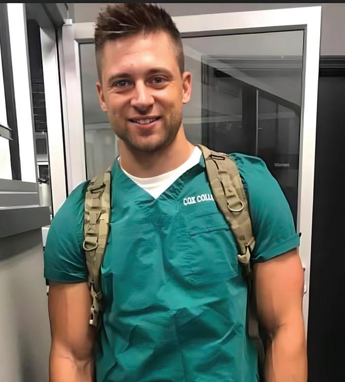 While working on his Associate of Science in Nursing Degree (ASN), Cameron applied for and received an interview for CRNA School and was overjoyed. After graduation, he began working at Mercy in Springfield, Missouri, in the Cardiovascular Intensive Care Unit (CVICU). With his eye on CRNA School, he sought a commission in the reserves as a critical care nurse and ultimately came back to Cox College to complete his Bachelor’s of Science in Nursing Degree. This summer he began the CRNA program.