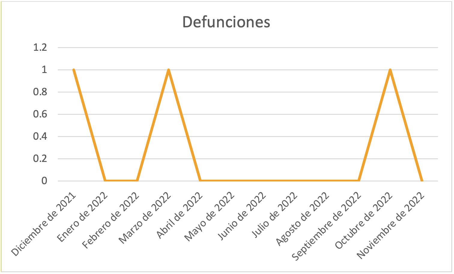 Durante este año solo se presentaron 3 defunciones por causas no relacionadas con la pandemia. Se debieron sobre todo a causas relacionadas con las enfermedades crónico – degenerativas que padece la mayor parte de la población.