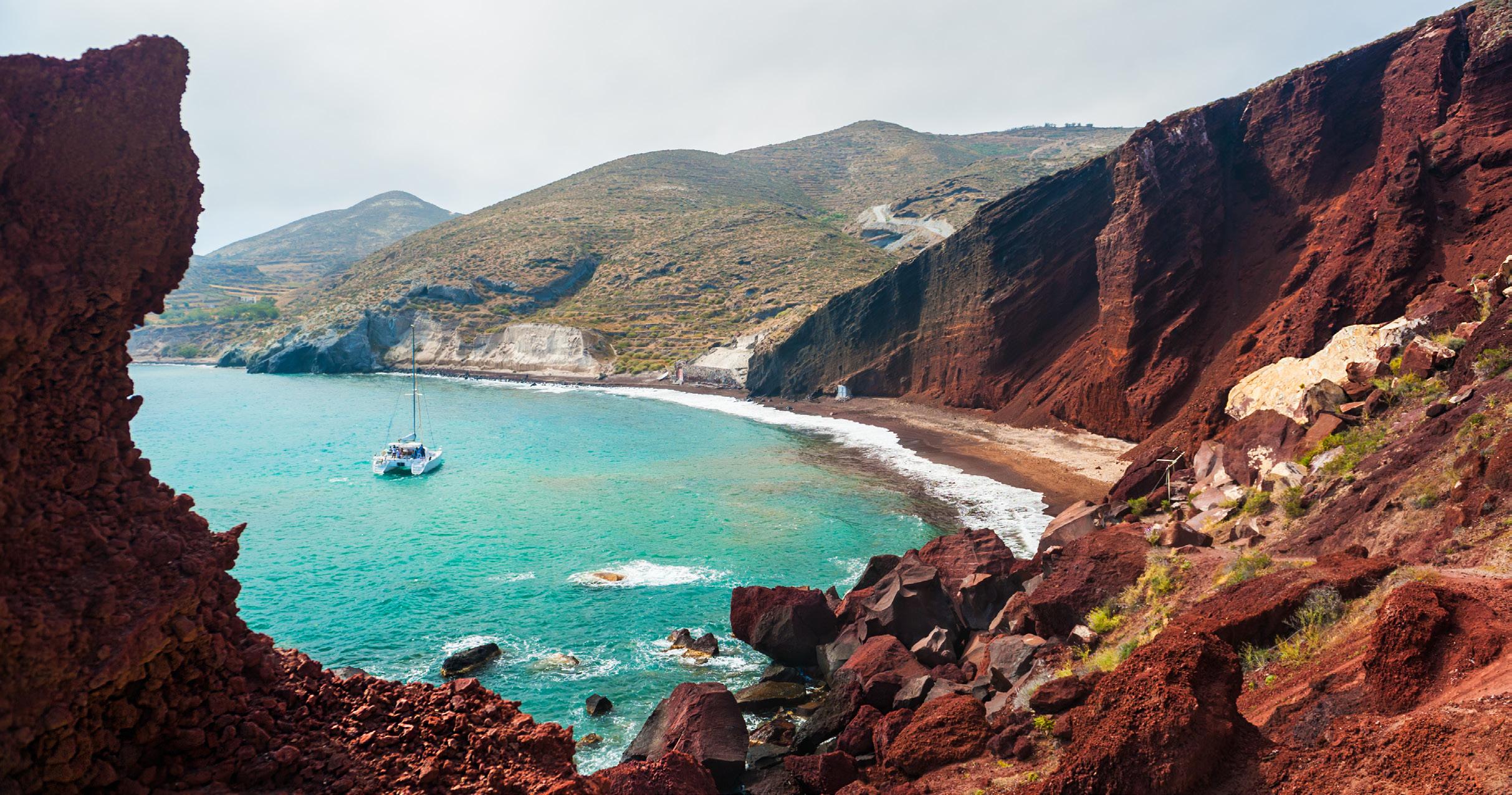 Can there be any doubt that summer holidays on a Greek island are associated with dips in the sea? Plan a trip to Santorini, immerse yourself in its beautiful beaches and create memories that will last forever. Red Beach is one of the most stunning beaches on the island. The red cliffs that surround it, in combination with the dark blue, crystal clear waters, make up a unique setting, which you must surely enjoy. In addition to the Red Beach, your holiday checklist should include, among others, Perivolos beach, Vlychada, White Beach, and Armeni, a small beach accessible by boat.