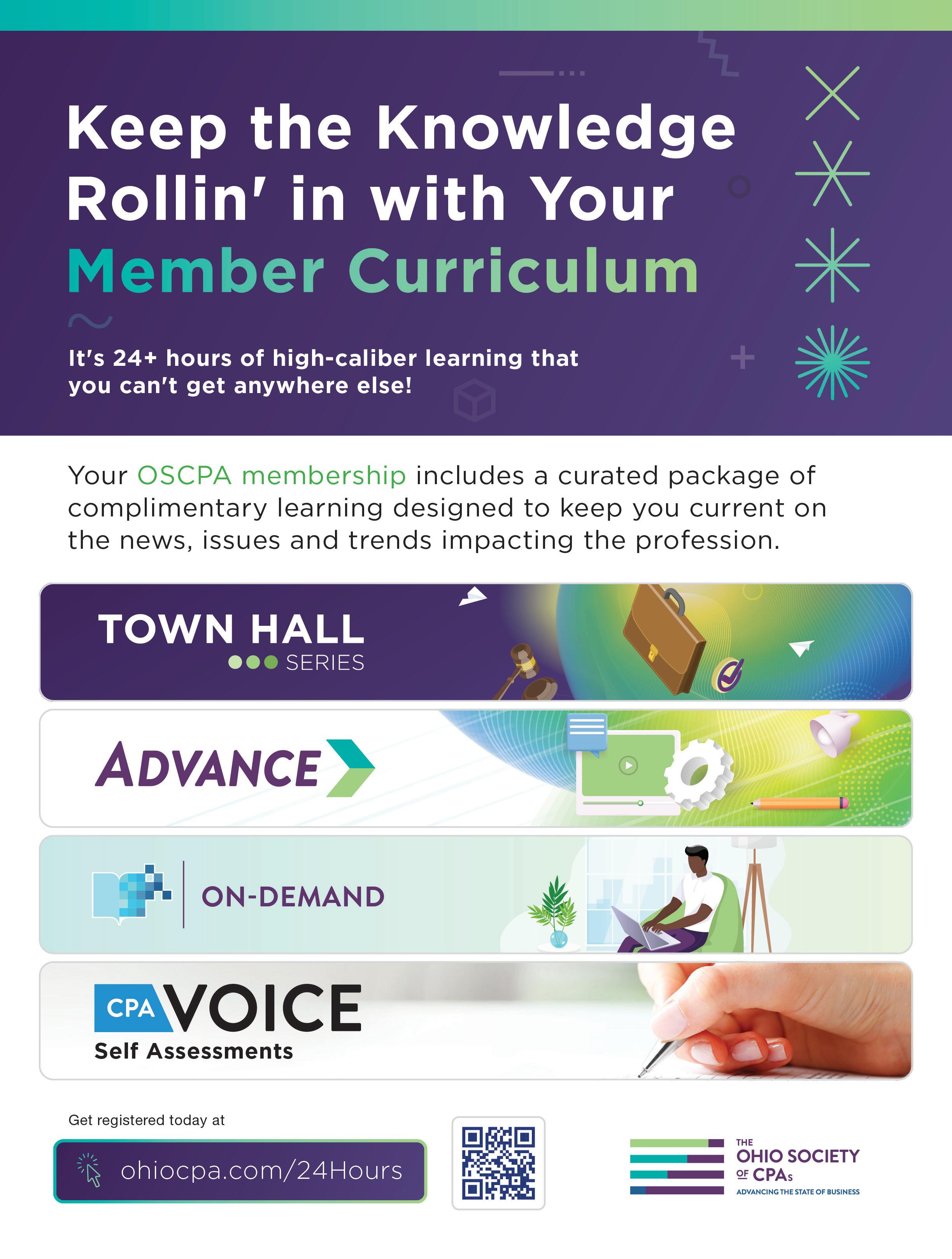 of complimentary learning/CPE. Your Member Curriculum is included with your membership to keep you current on the topics that matter most.