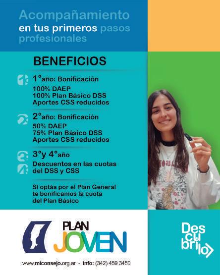 para su inserción laboral, brindando bonificaciones y apoyo en sus primeros pasos tanto en el Derecho de Ejercicio, Departamento de servicios sociales y caja de seguridad social. El futuro de nuestra profesión se construye hoy, brindando oportunidades reales a quienes se integran a la comunidad.