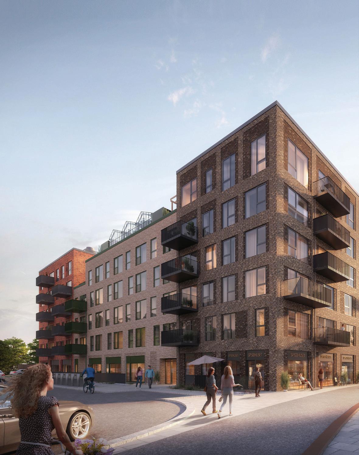 LIVING BY ALFA’s location in IrmaByen neigh bourhood in Rødovre, a suburb on the edge of Copenhagen only 8 km from City Hall Square, enables the residents to both feel part of the city, but also close to nature.