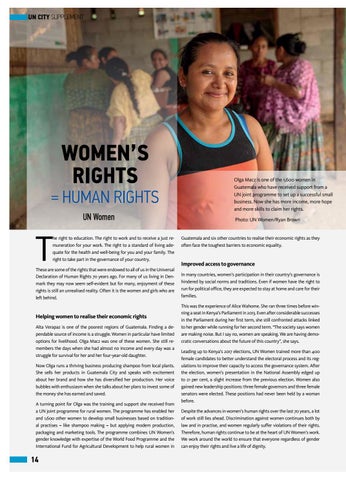 Helping women to realise their economic rights Alta Verapaz is one of the poorest regions of Guatemala. Finding a dependable source of income is a struggle. Women in particular have limited options for livelihood. Olga Macz was one of these women. She still remembers the days when she had almost no income and every day was a struggle for survival for her and her four-year-old daughter. Now Olga runs a thriving business producing shampoo from local plants. She sells her products in Guatemala City and speaks with excitement about her brand and how she has diversified her production. Her voice bubbles with enthusiasm when she talks about her plans to invest some of the money she has earned and saved. A turning point for Olga was the training and support she received from a UN joint programme for rural women. The programme has enabled her and 1,600 other women to develop small businesses based on traditional practises – like shampoo making – but applying modern production, packaging and marketing tools. The programme combines UN Women’s gender knowledge with expertise of the World Food Programme and the International Fund for Agricultural Development to help rural women in