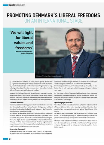 PROMOTING DENMARK’S LIBERAL FREEDOMS ON AN INTERNATIONAL STAGE ‘We will fight for liberal values and freedoms’ Minister of Foreign Affairs, Anders Samuelsen