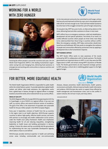 WHO AT UN CITY The WHO Regional Office for Europe (WHO/Europe), based at UN City in Copenhagen, is one of WHO’s six regional offices. It has over 500 staff, 29 country offices and several technical centres of excellence. The goal of the office is the attainment of equitable and sustainable health for the 900 million people in the WHO European Region.