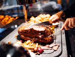 such as exquisite seafood, sushi, and meats, as well as an international array of bread, cheese, and delightful salads. Live cooking stations offer carefully curated dishes, including freshly shucked oysters, delectable pasta, risottos, and the juiciest meat cuts, making it a culinary delight for connoisseurs.