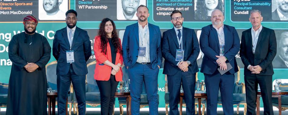 The session was moderated by Dr. Kam Al-Mazrui, Director Sports and Events at Mott MacDonald, with panellists including: Ayo Ajayi, Director at WT Partnership; Engi Jaber, +impact – Associate Partner, Sustainability and Head of Climatize, Climatize,