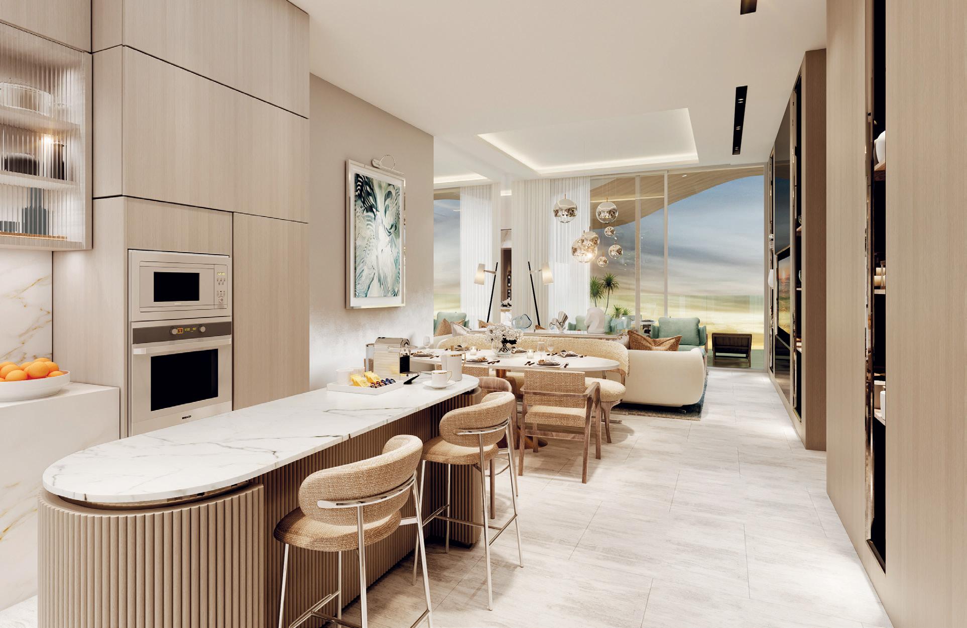 Asked about features that makes The Pier Residences standout in the market, McCauley highlights, "These residences represent the pinnacle of sophisticated living. Key features included expansive windows and private balconies that extend living spaces towards the azure horizon, perfect for alfresco dining and enjoying panoramic views. Each apartment combines comfort with elegance, underscored by high ceilings that amplify the sense of space, expansive windows illuminating interiors with natural light, and Scandinavian oak hardwood-style flooring that introduces warmth and fully automated smart home technology. The kitchens feature marble or quartz countertops and sophisticated appliances from Bosch and Siemens, optimised for functionality, while the bathrooms, inspired by the finest spas, feature Italianinspired interiors, creating a sanctuary of relaxation."
