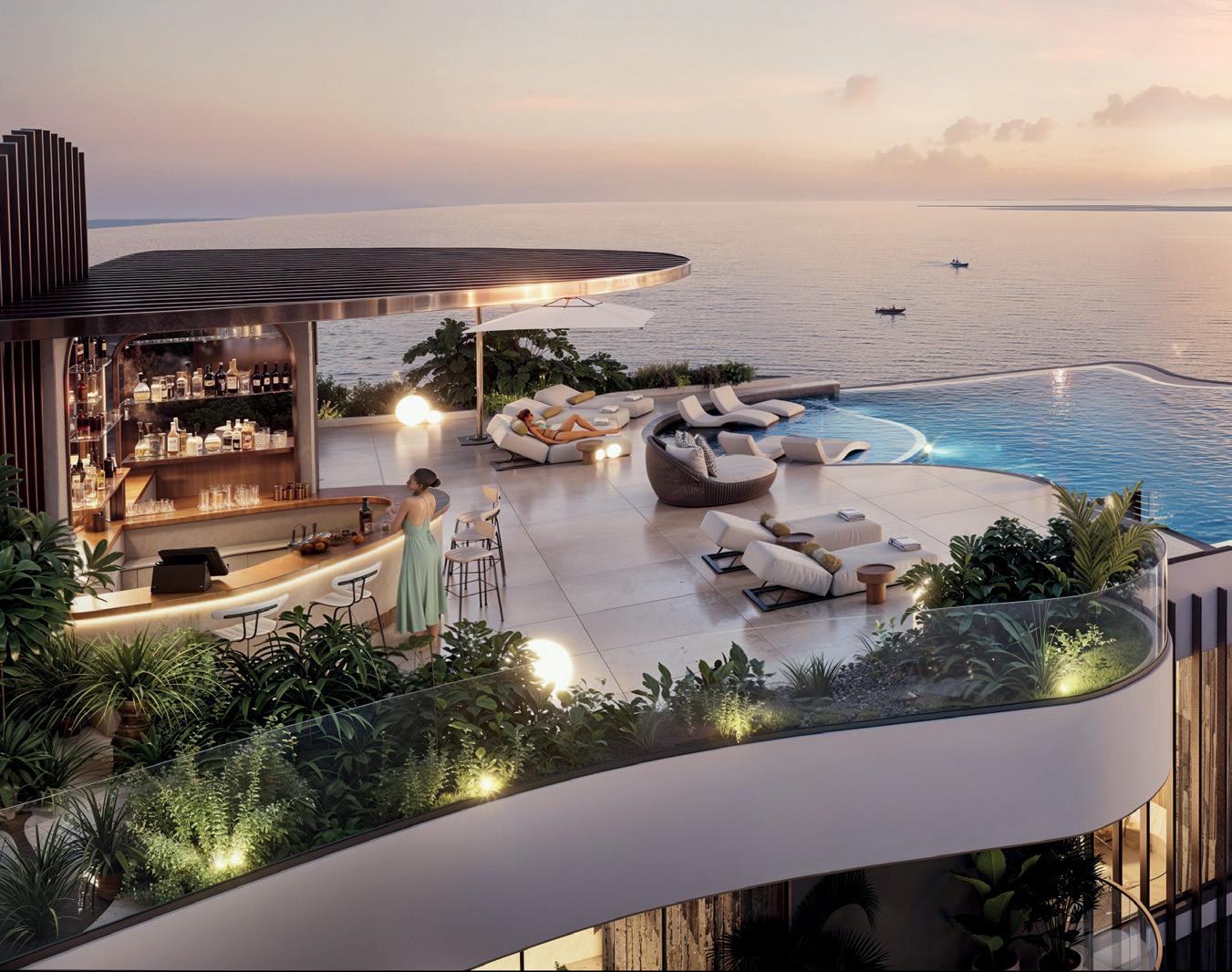 "Beyond the private living spaces, The Pier Residence boasts a suite of exceptional amenities designed for wellness and social engagement. An infinity pool visually merges with the ocean alongside a state-of-the-art gym, a tranquil yoga studio, and a padel court. Additionally, comprehensive jogging and