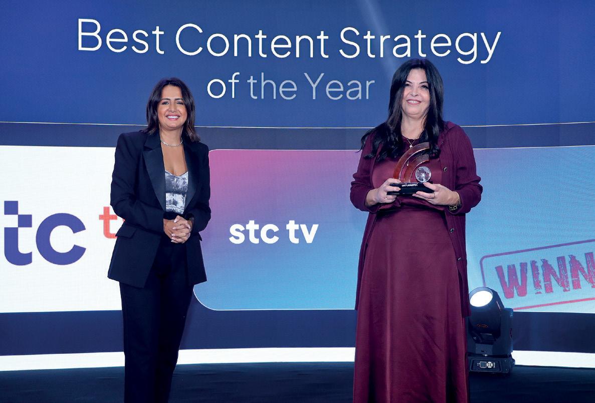 stc tv has become a challenger brand in the region by offering a diverse and premium content library that focuses on both Western and Saudi content. It has collaborated with key Saudi investors, thereby strengthening its market position. With a mix of new premieres, appointment viewing and audience-driven content, it has enhanced engagement significantly. Shaymaa Awad (l), Marketing Manager at SAWA Rights Management, presented the award to Kholoud Abu-Homos, VP of Content, stc tv.
