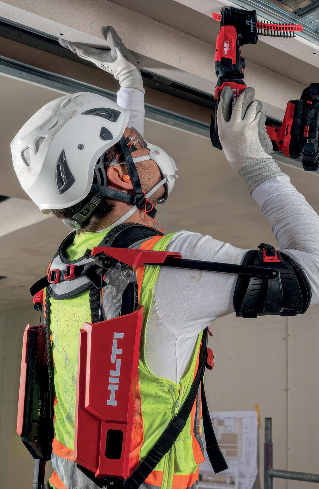 on, this caused discomfort. Additionally, the test group noted issues with the exoskeleton’s size, measuring 950 mm by 450 mm. This sizing posed challenges for larger operators, especially during the downward-facing drilling tasks. These concerns show that while the suit might be suited for horizontal or vertical subsidence works, such as in tunnels, there was an increased risk of injury during downward drilling tasks.