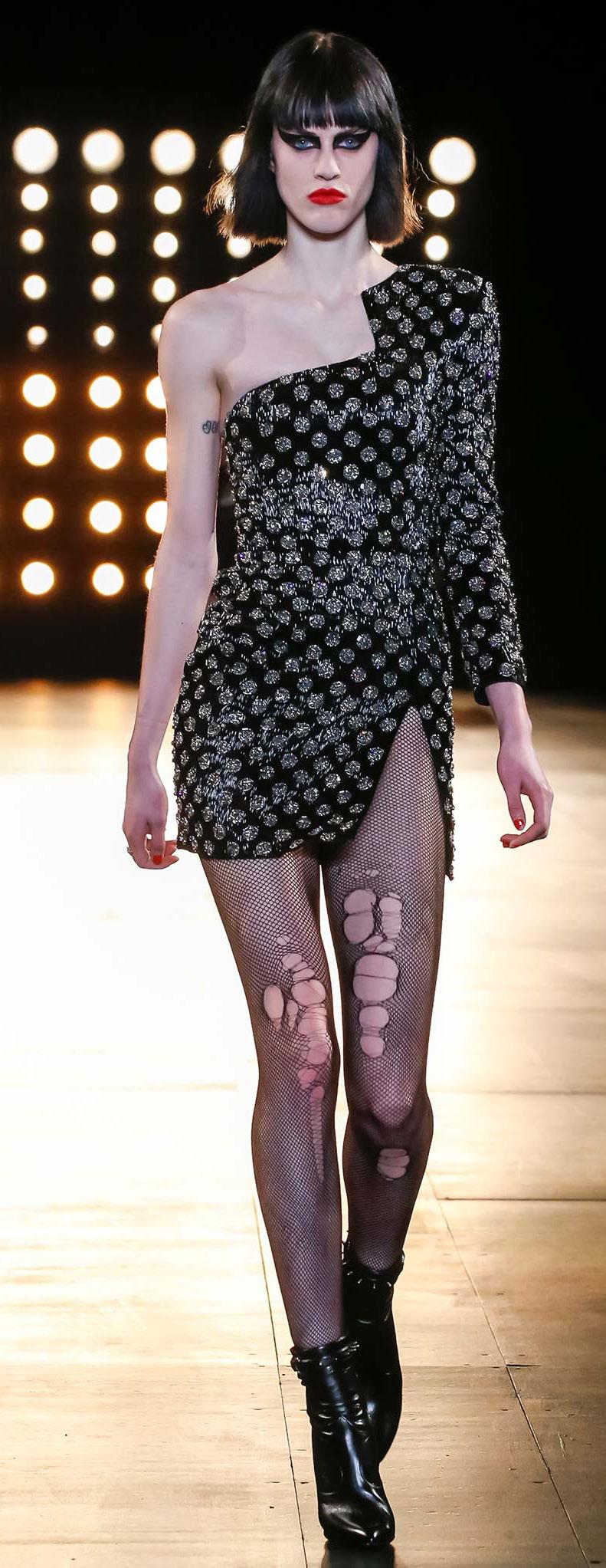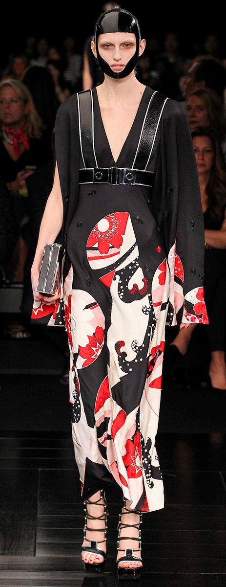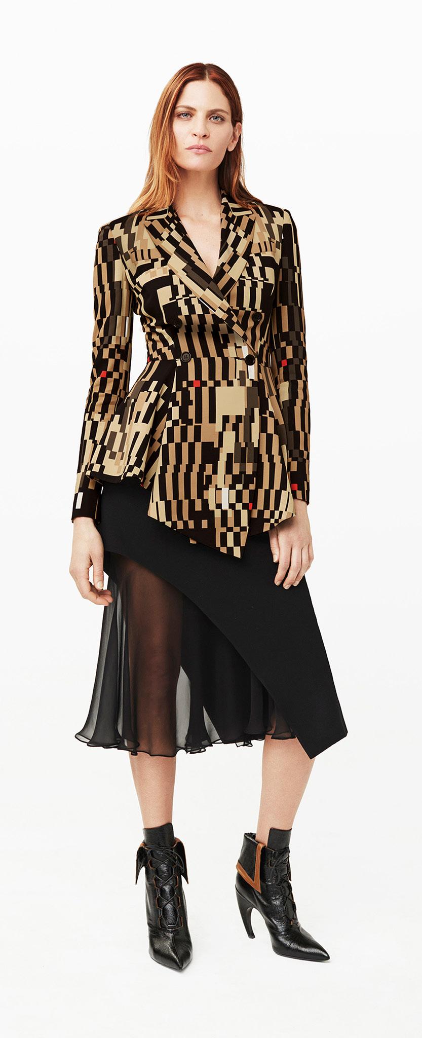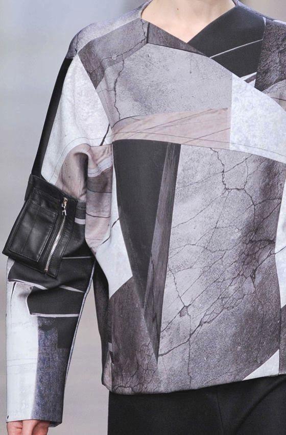 For Spring, the prints and patterns are symmetrical, bold, and mixed. For Autumn, they are still symmetrical, darker, and geometric. The style translates as sporty, sexy edginess.