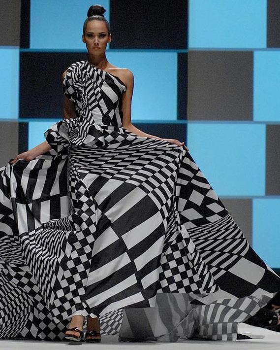 + Prints and patterns become bolder and play with optical stripes and geometrics.