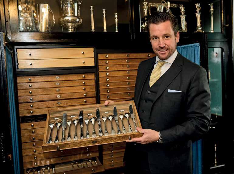 Mit großem Stolz präsentiert Firmenchef Mag. Jean-Paul Vaugoin eines seiner 200 Silber-Tafelbesteck-Sets.