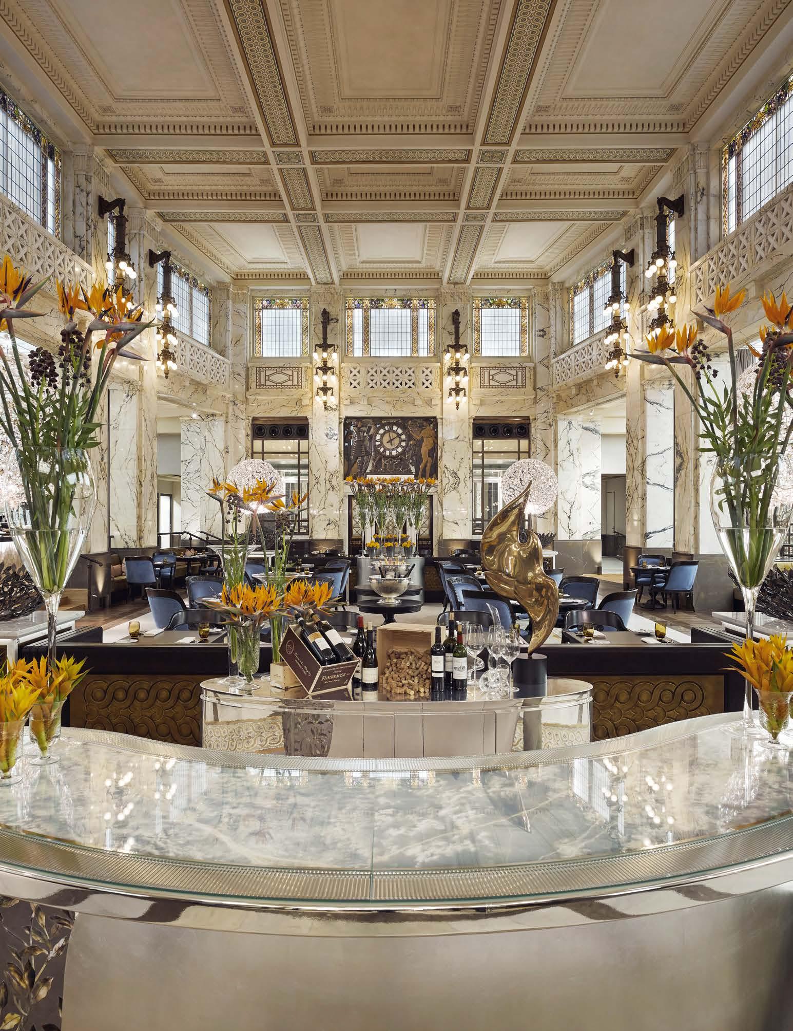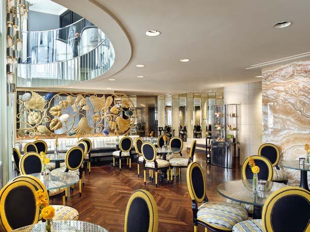 In the lounge, with its soaring windows and velvet-covered armchairs, the afternoon drifts by like a scene from an old film. The scent of coffee and patisserie dreams fills the air, while soft jazz floats above the crystal chandelier.
