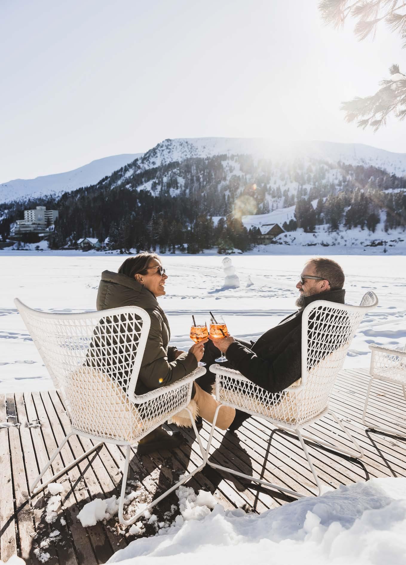 tische balinesische Behandlungen, warme Farben, stille Räume und das Gefühl, wieder mit sich selbst in Kontakt zu sein. Danach: eine Runde im Indoor-Pool oder der Sprung ins klare Wasser des Turracher Sees –sogar im Winter für Eisbade-Fans. Das Herzstück des Zu-sich-Kommens ist der Wald.Raum. Ein Stück Natur als Einladung zum Durchatmen und Abschalten. Keine Inszenierung, kein Konzept – nur du und der Wald. Geschäftsführer Alexander Springenschmidt ist nicht nur Gastgeber, sondern auch Coach. Seine Workshops wie Flow Secrets, High Flow Performance oder das Anti-Burn-out-Seminar geben Impulse zur inneren Ausrichtung – eingebettet in ein Setting, das von allein zur Ruhe bringt. „Wellness sollte nicht bloß Entspannung bedeuten, sondern echte Balance ermöglichen“, sagt er. Und wer hier verweilt, spürt schnell: Das gelingt.