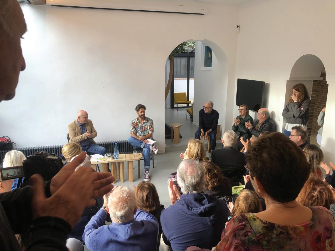Ci-dessous Réunion débat “Quel avenir pour le sport automobile sous toutes ses formes” avec daniel Ortelli, Yvon Amiel et Thomas Woloch à la librairie Le Vestiaire à MoT à Nice, en octobre 2024. © Sabine delabassé