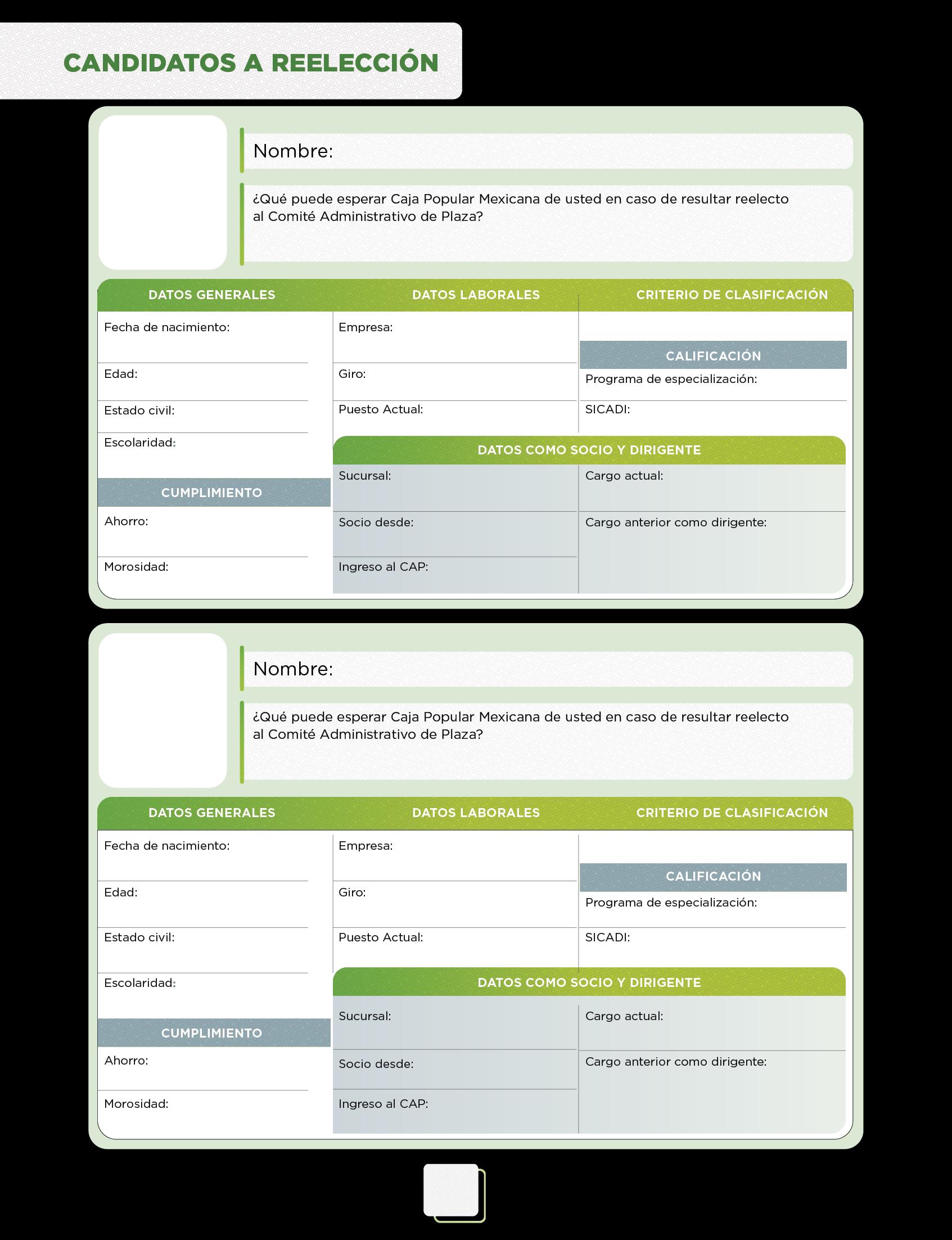 Este Comité Administrativo de Plaza, cuenta con dos vacantes por lo que, se elegirá a dos candidatos para cubrir la titularidad, conforme lo marca el artículo 108, 109 y 110 del Reglamento de Integración y Funcionamiento de los Dirigentes. Así mismo, serán electos 5 suplentes que cubrirán las vacantes que se pudiera dar durante el ejercicio, conforme a los establecido en el artículo 92 del Reglamento de Integración y Funcionamiento de los Dirigentes.